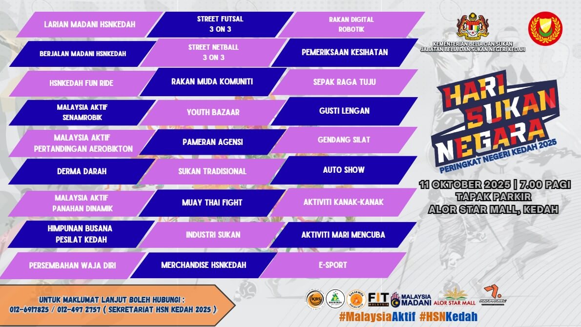 Acara penuh semangat ini dianjurkan oleh Kementerian Belia dan Sukan Malaysia bersama Jabatan Belia dan Sukan Negeri Kedah, dengan pelbagai pengisian menarik untuk semua lapisan masyarakat.